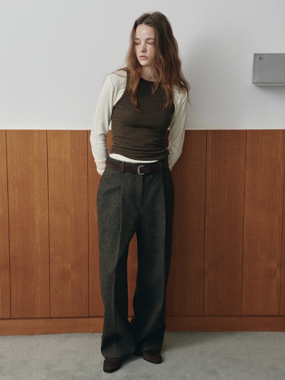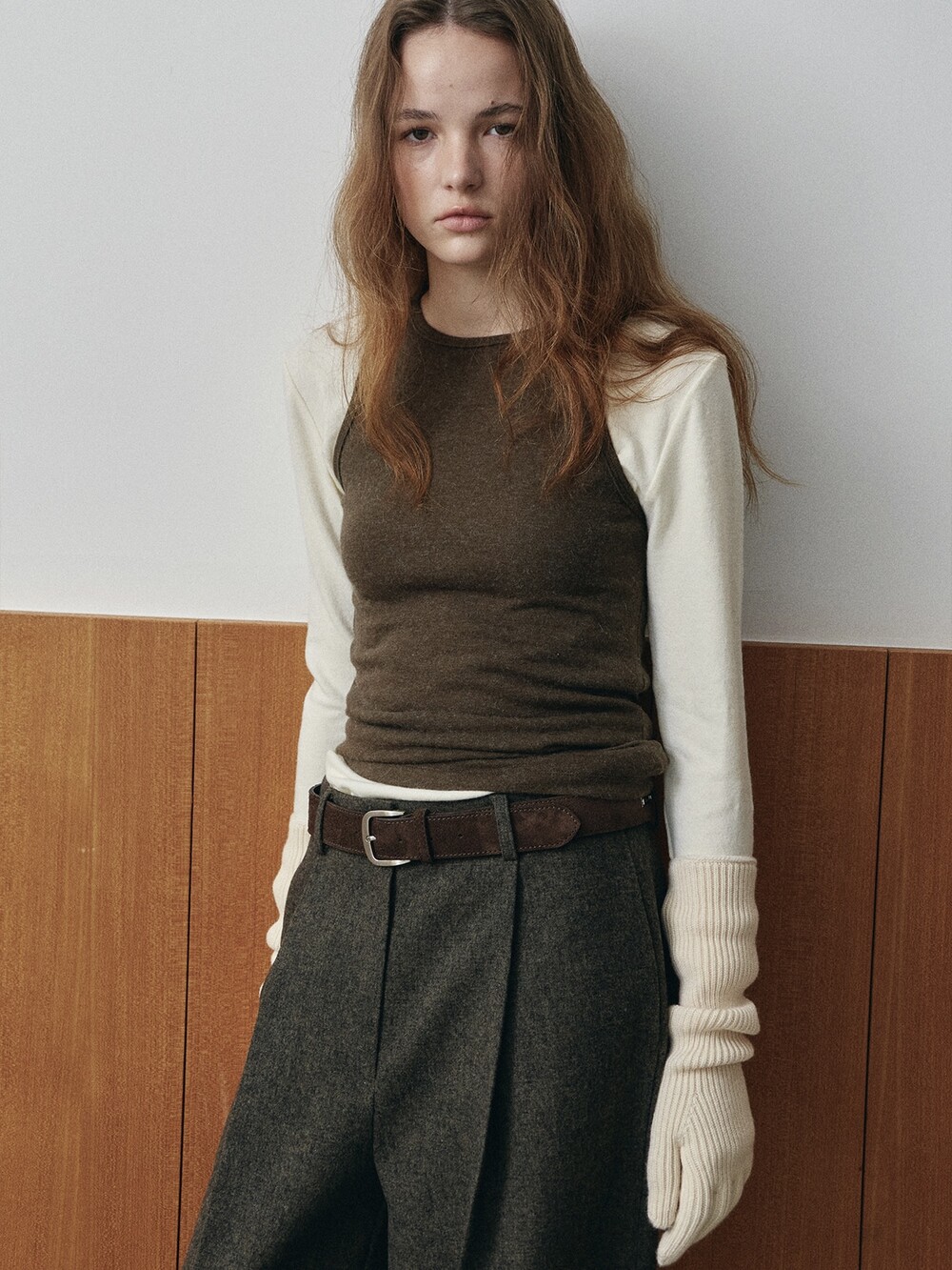 Wool-blend tee-CREAM/ GREY/ BLACK