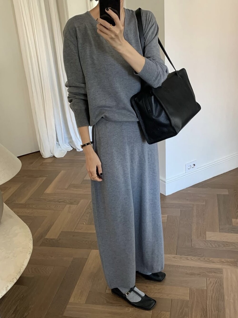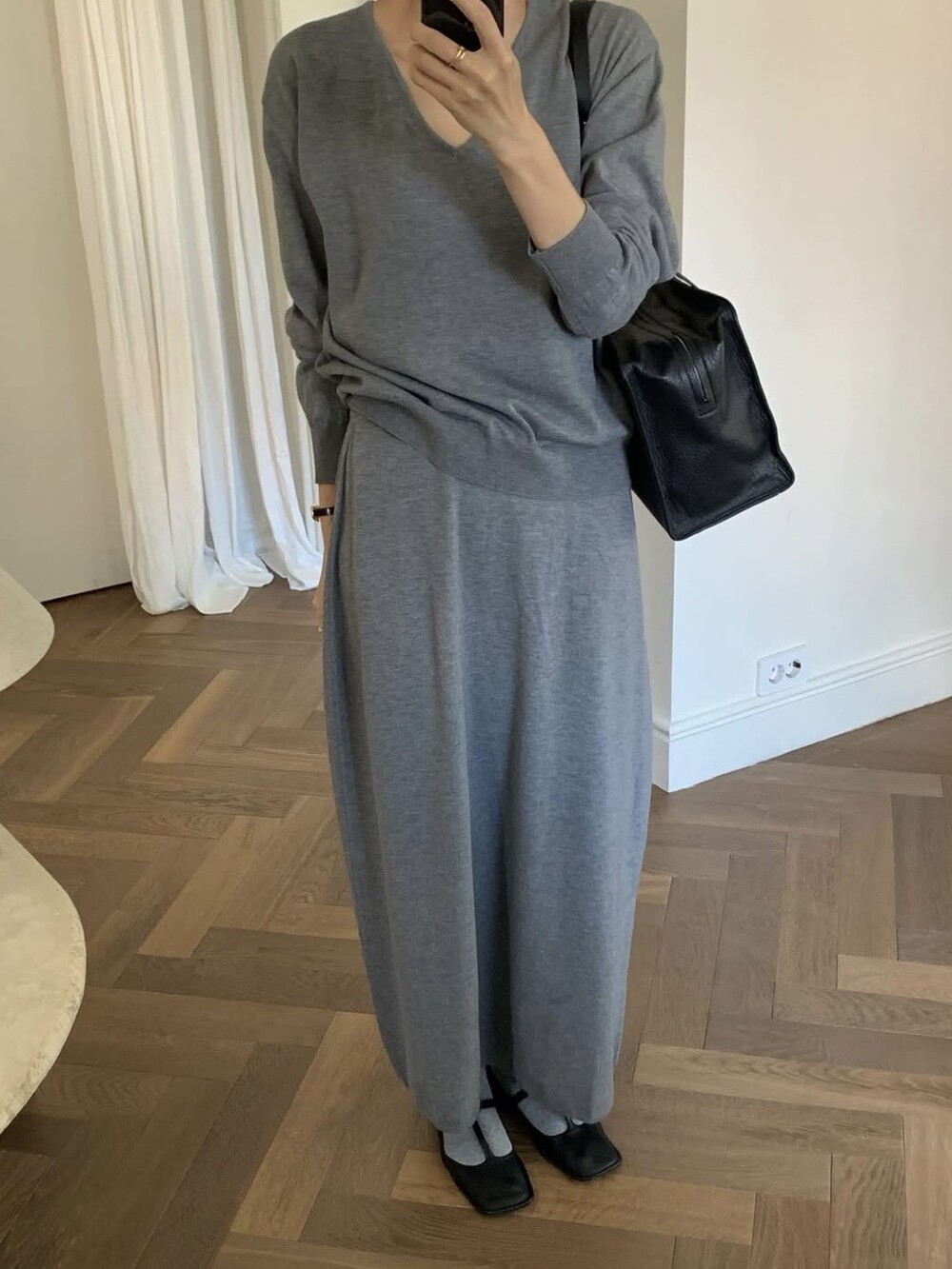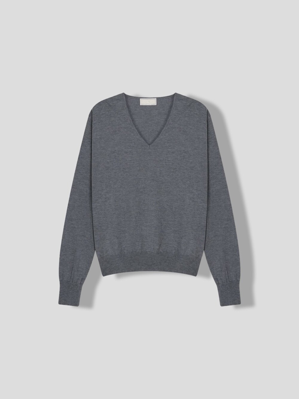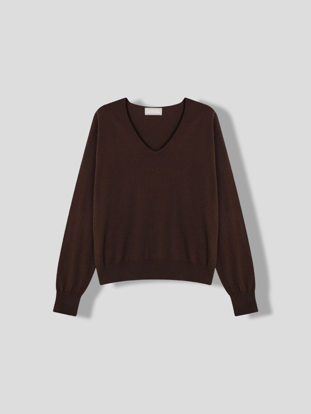 Wool-Blend V-Neck Knit-GREY/ BROWN/ BLACK