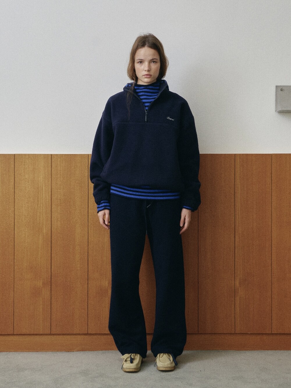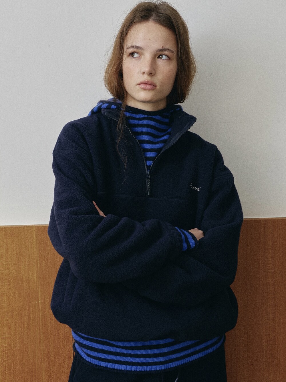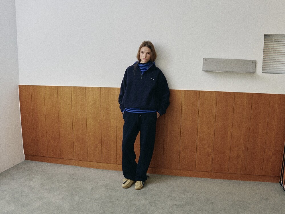 Relaxed fit half-zip fleece pullover-NAVY/ CHARCOAL BROWN