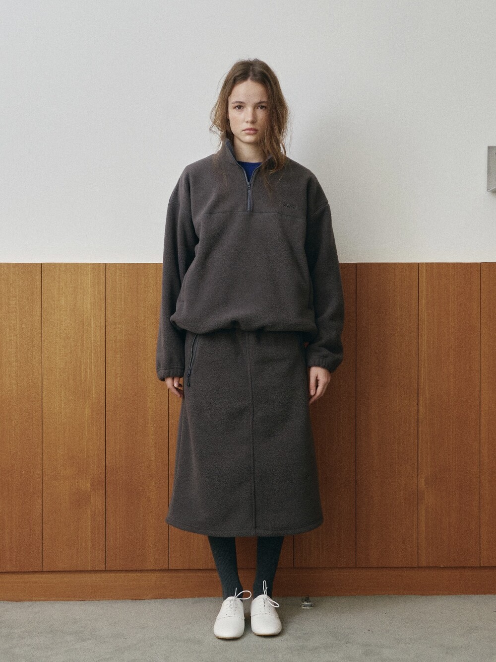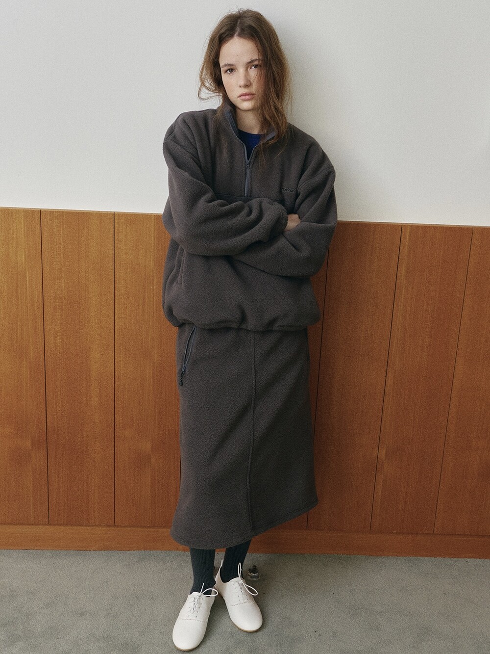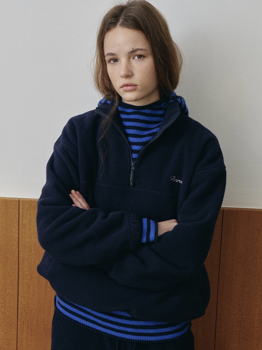 Relaxed fit half-zip fleece pullover-NAVY/ CHARCOAL BROWN