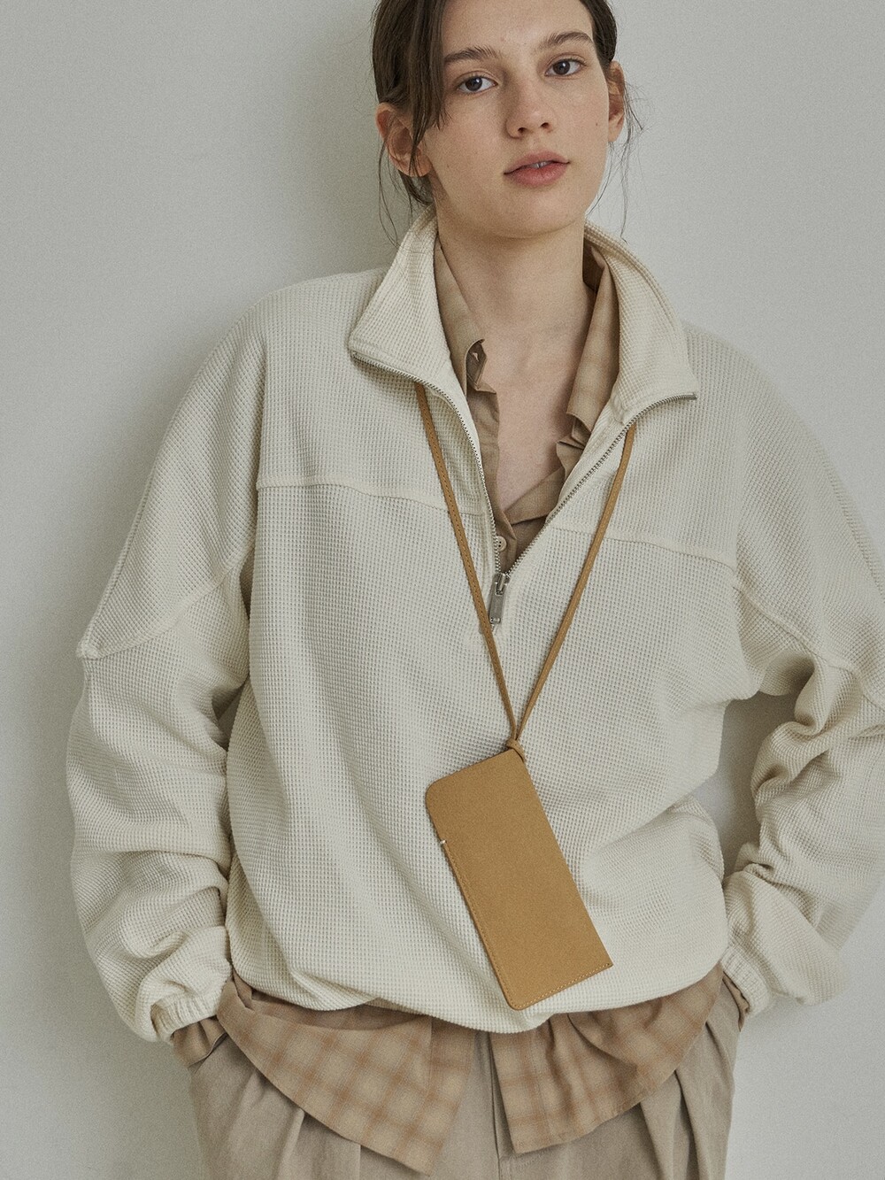 Relaxed Fit Half-Zip Waffle Pullover-3 Colours