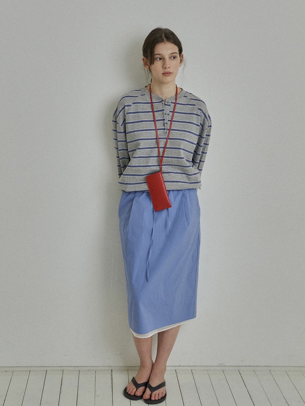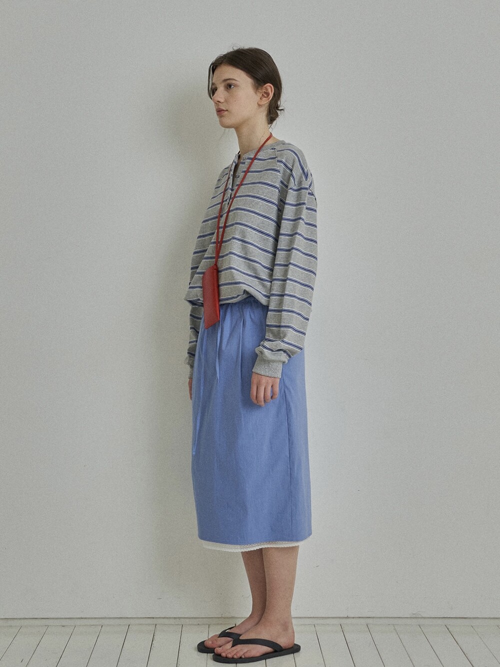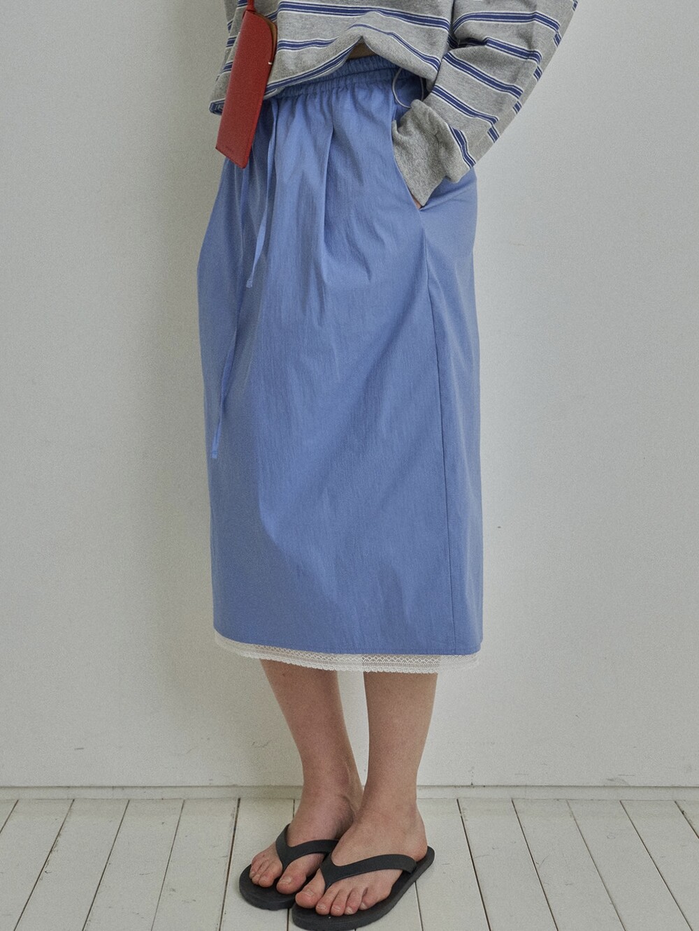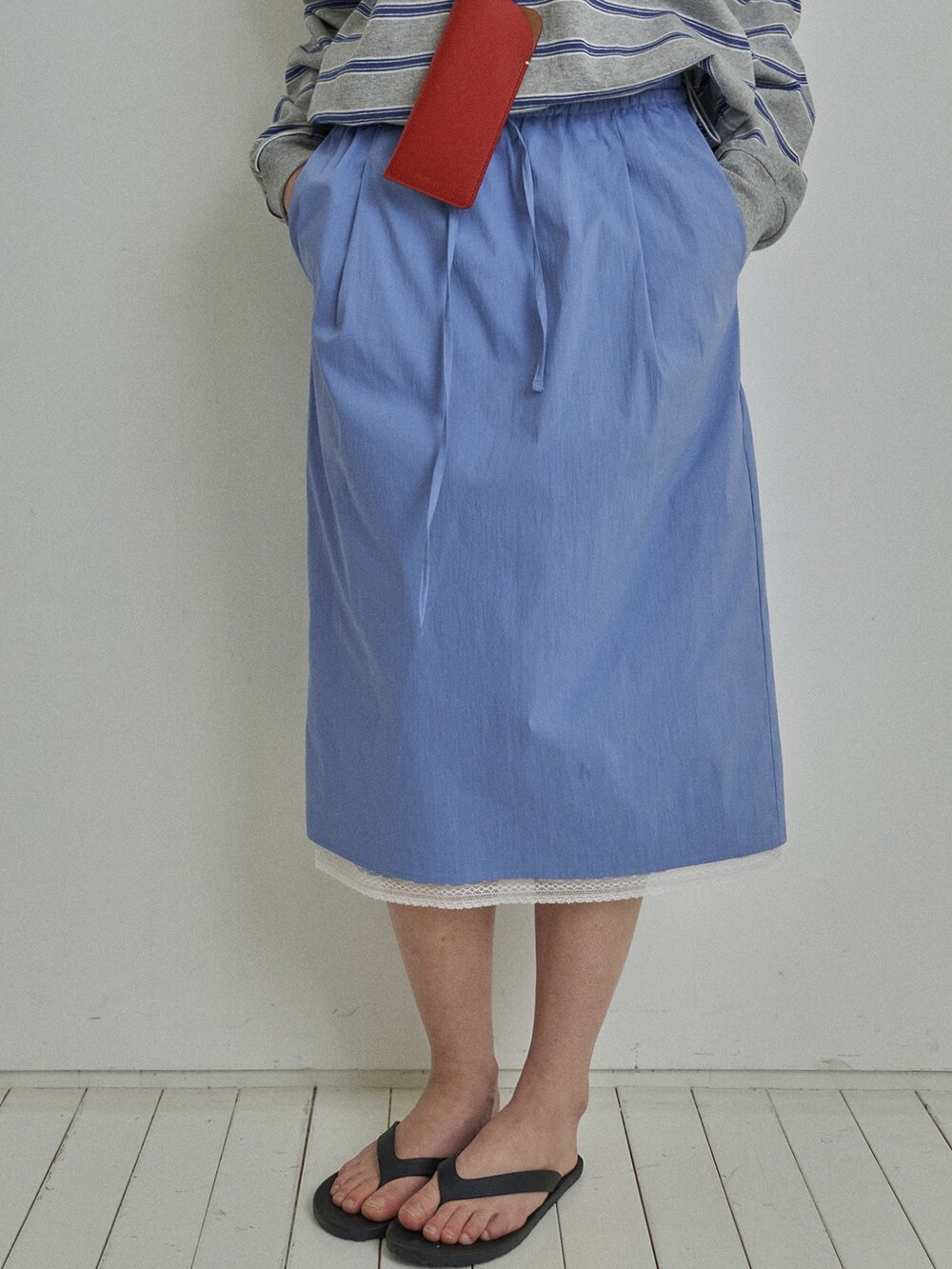 Drawstring midi skirt-BLUE