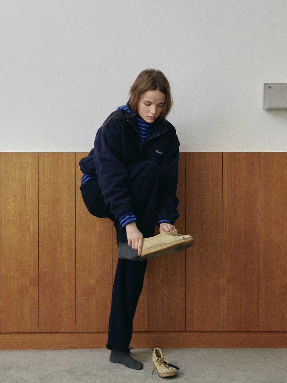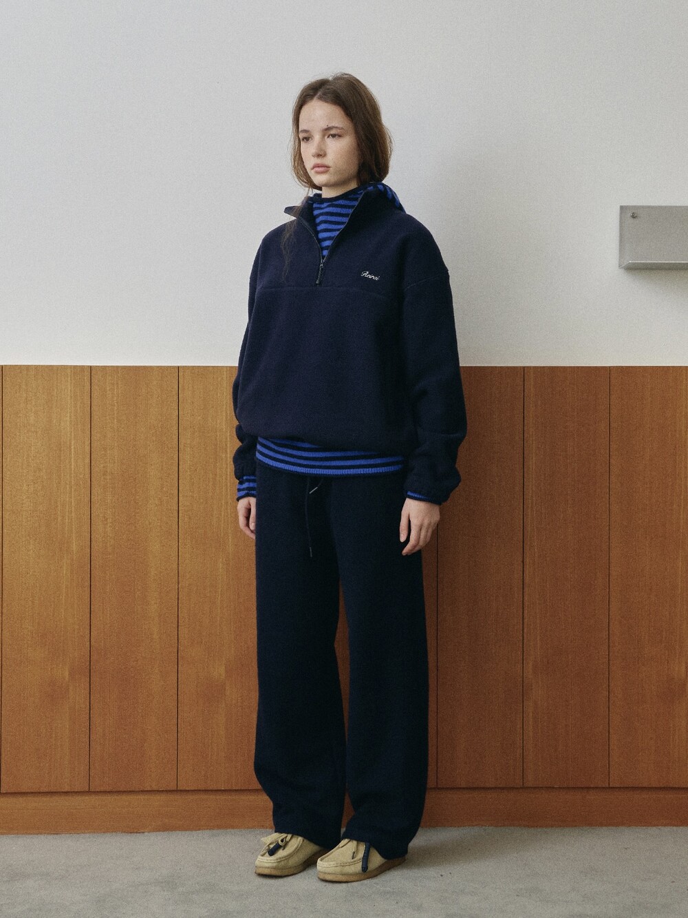 Relaxed-Fit Wool-Blend Knit Pants-NAVY/ GREY/ IVORY