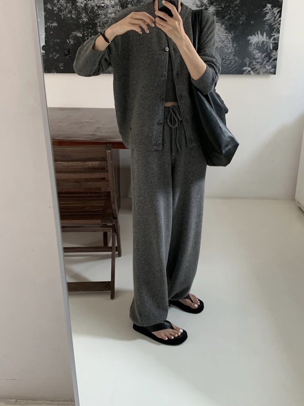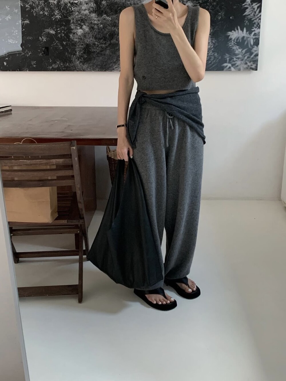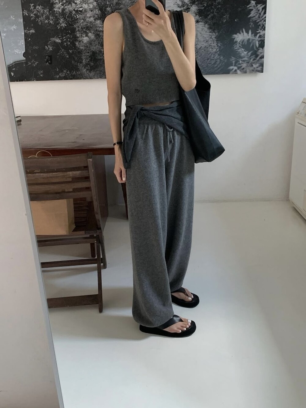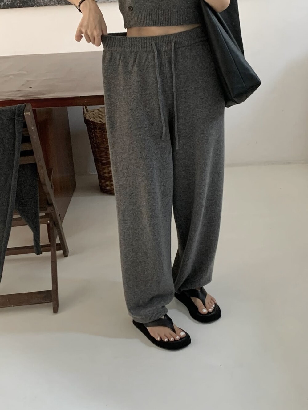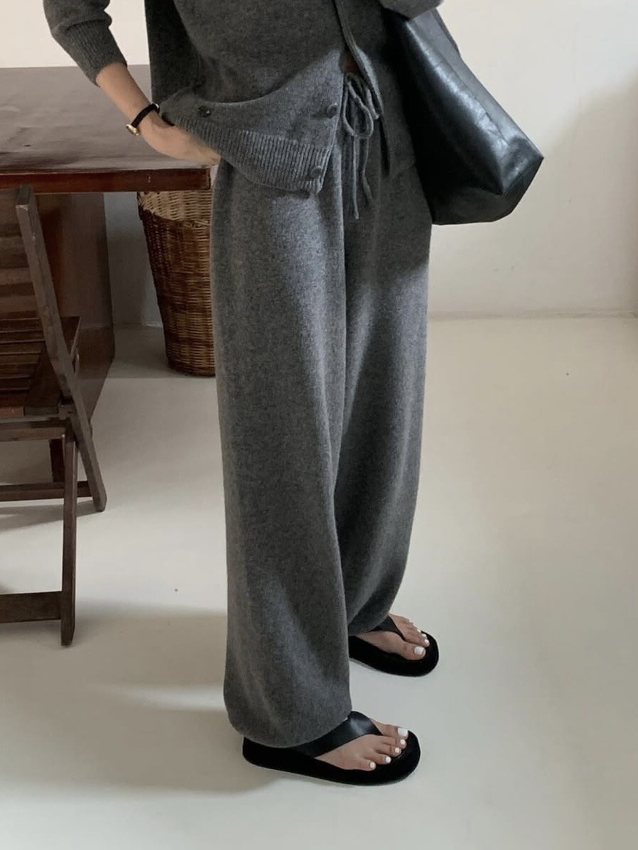 Wide-leg knit pants-GREY/ CHARCOAL/ BLACK