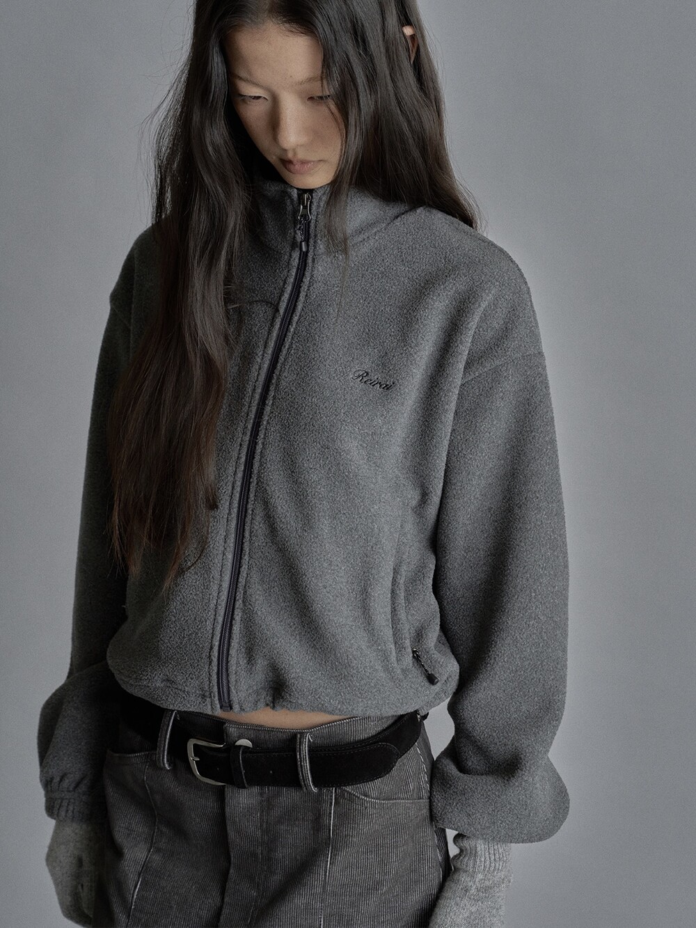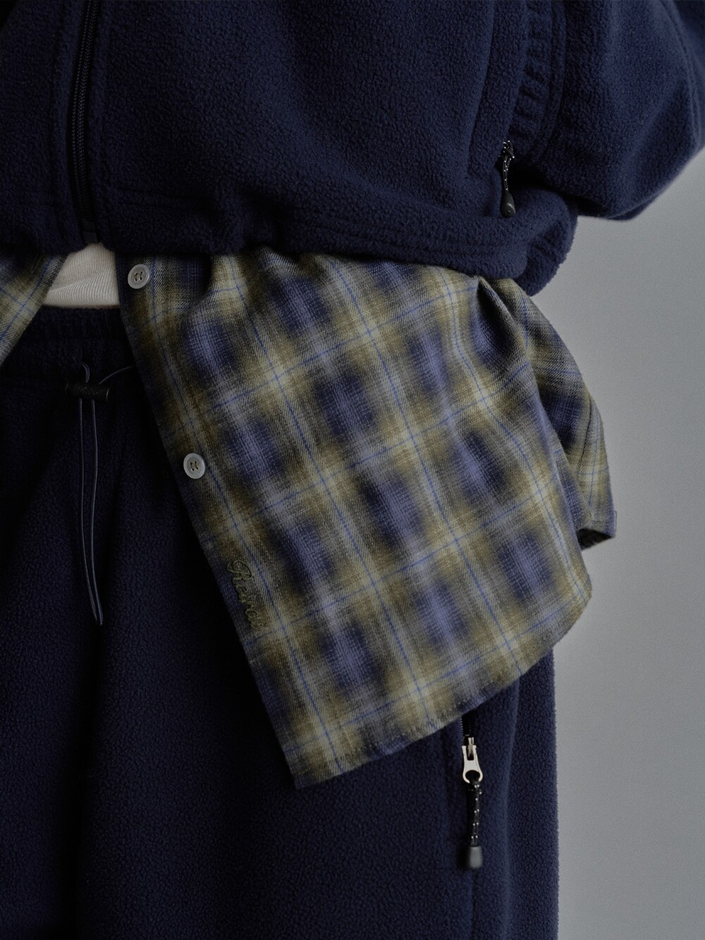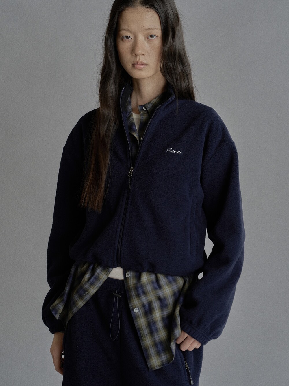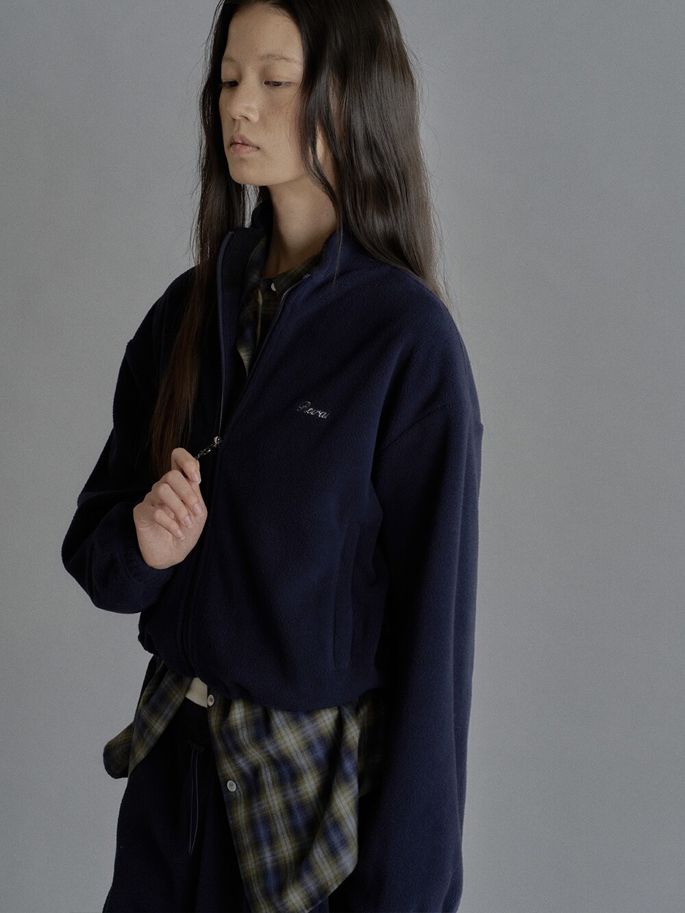 Cropped fleece jacket-CHARCOAL/ NAVY