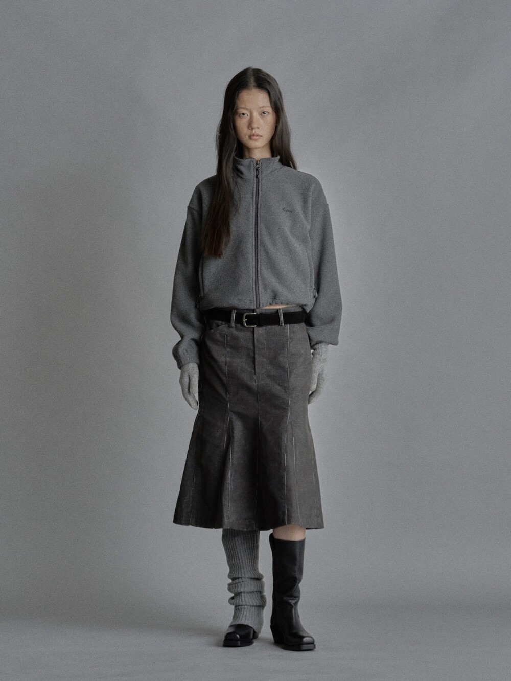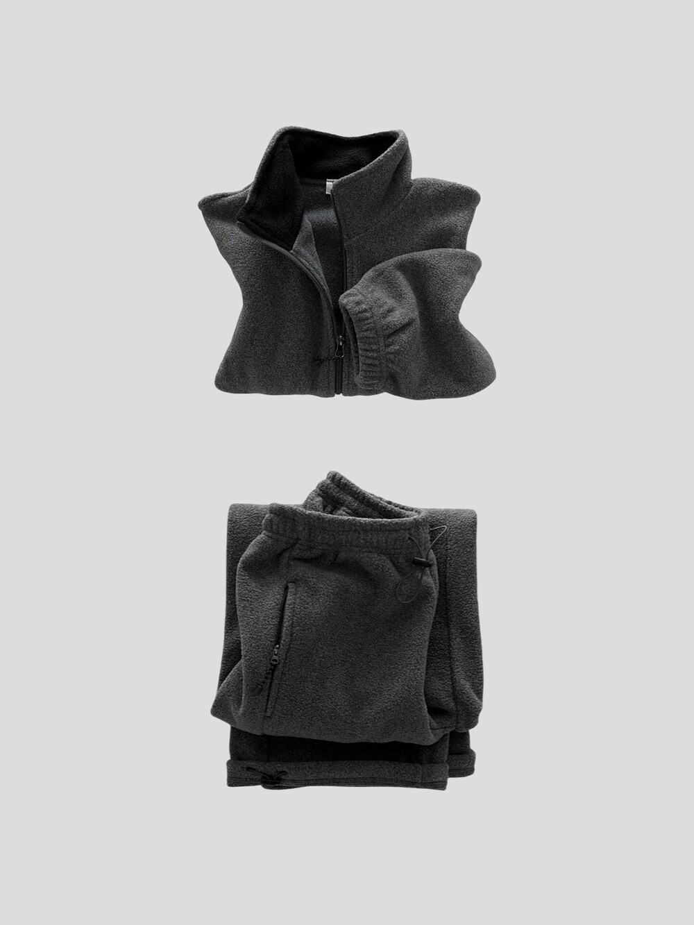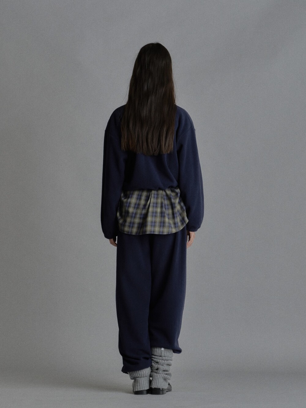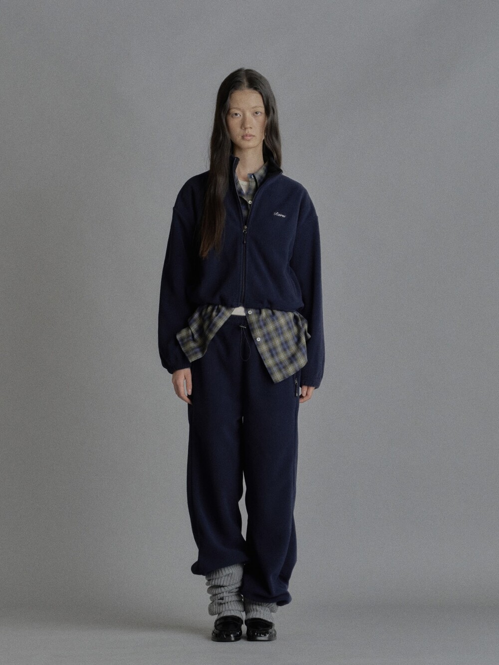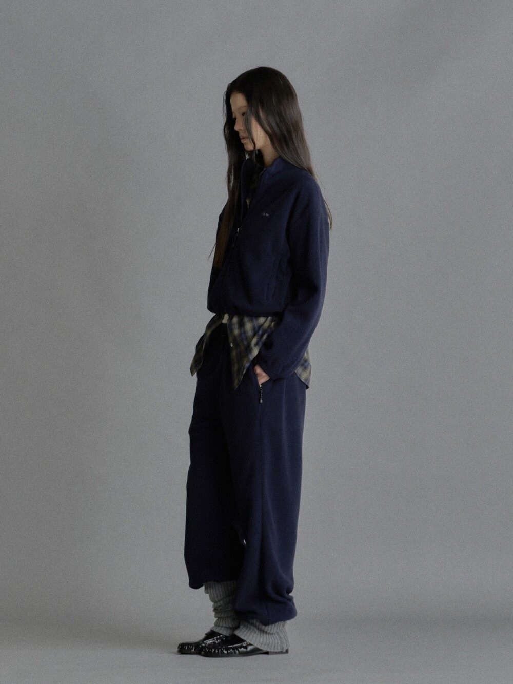 Cropped fleece jacket-CHARCOAL/ NAVY