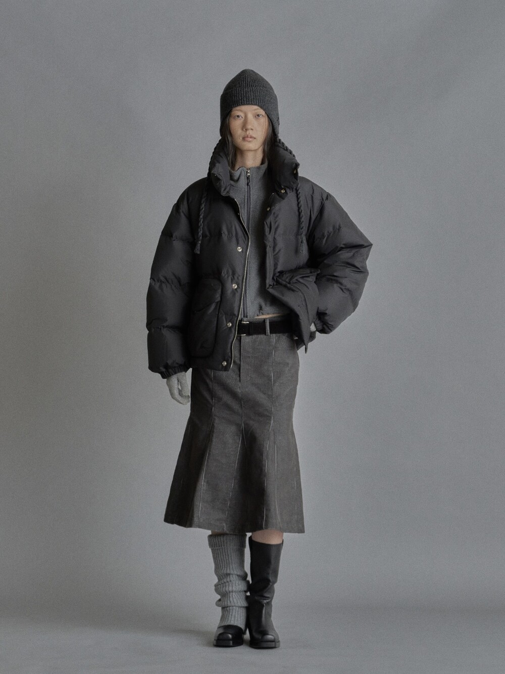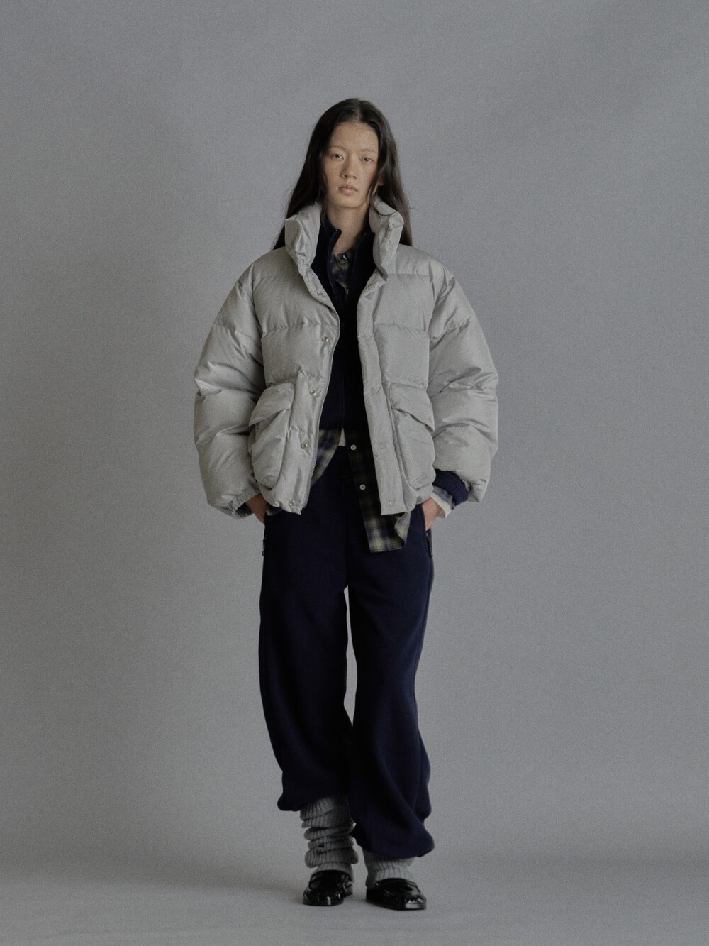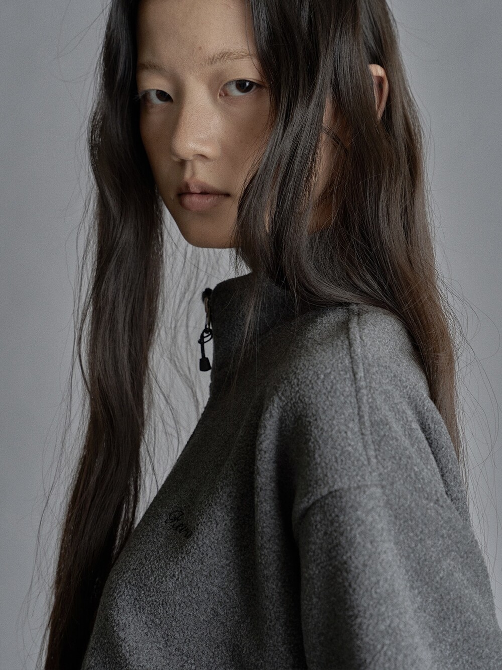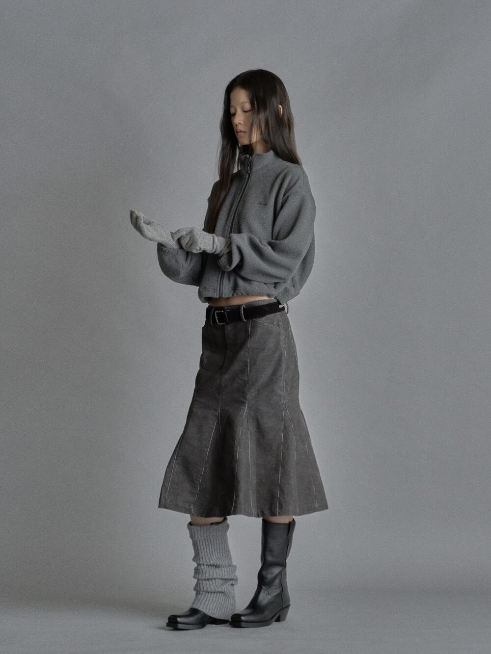 Cropped fleece jacket-CHARCOAL/ NAVY