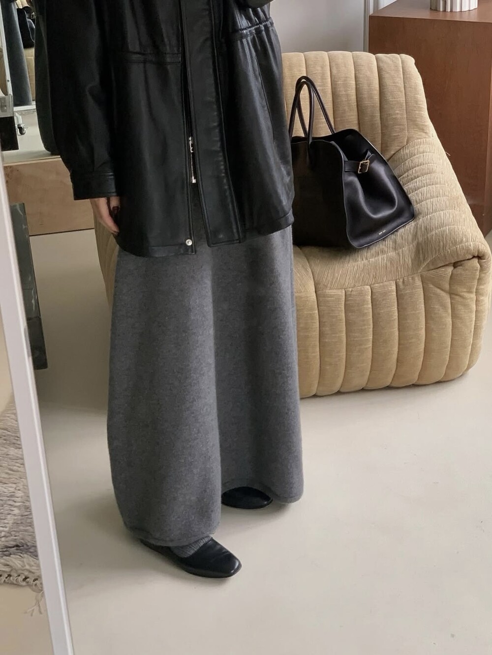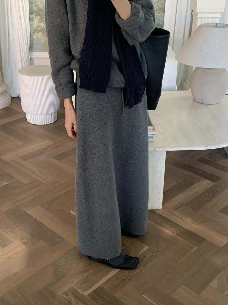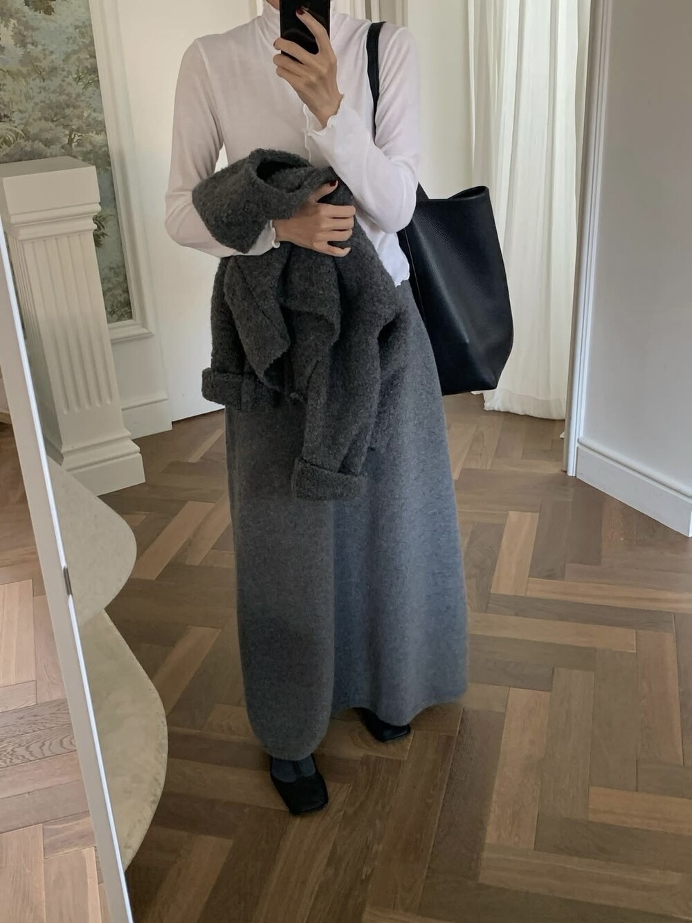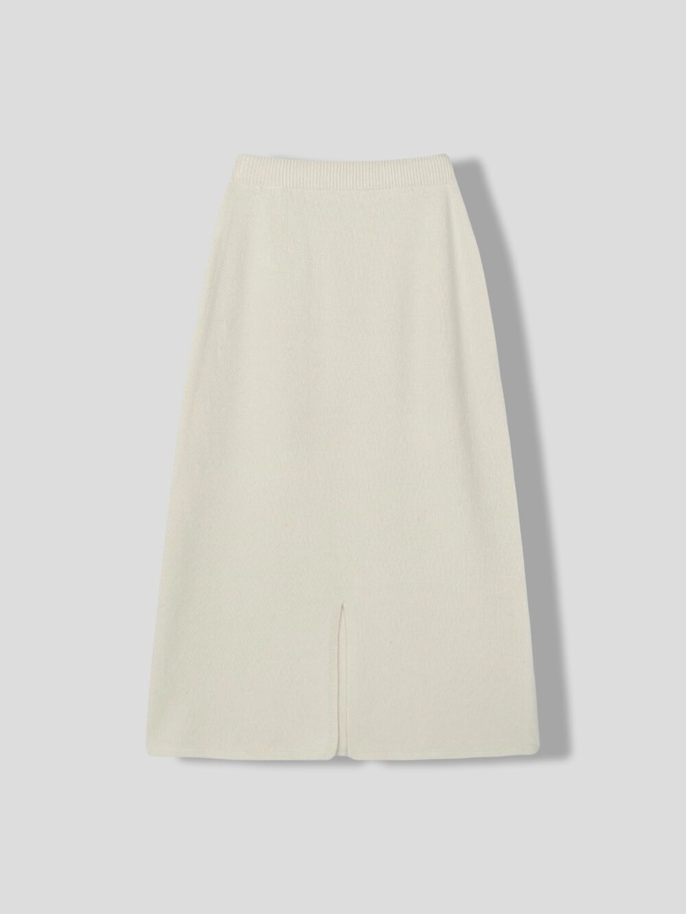 Wool knit maxi skirt-IVORY/ GREY/ BLACK