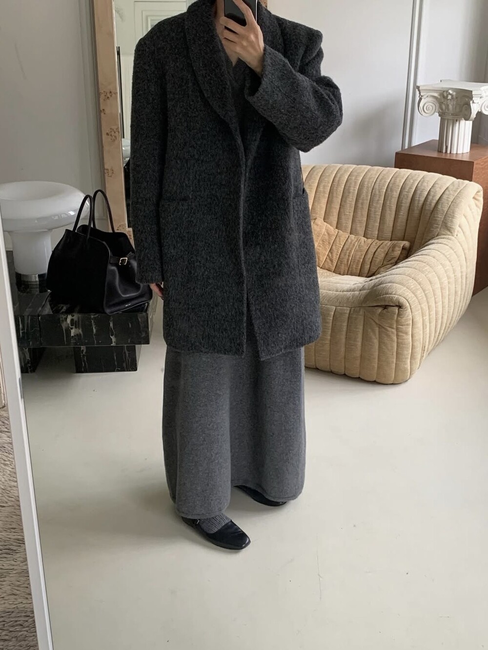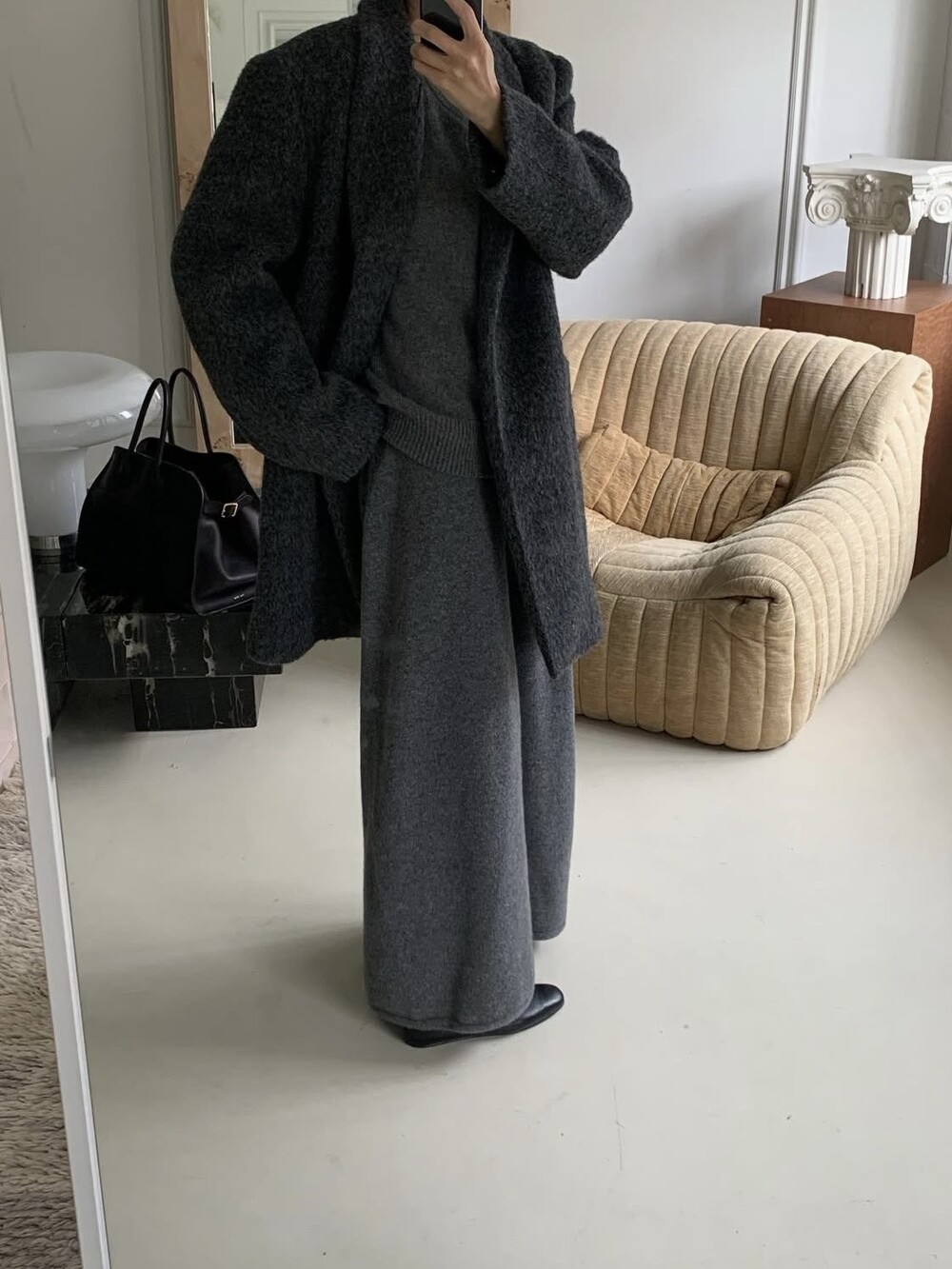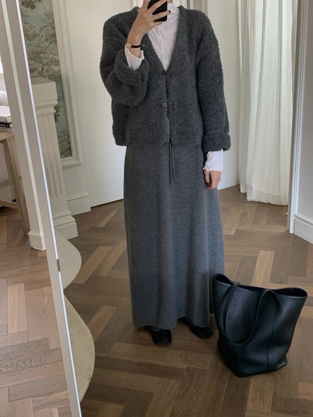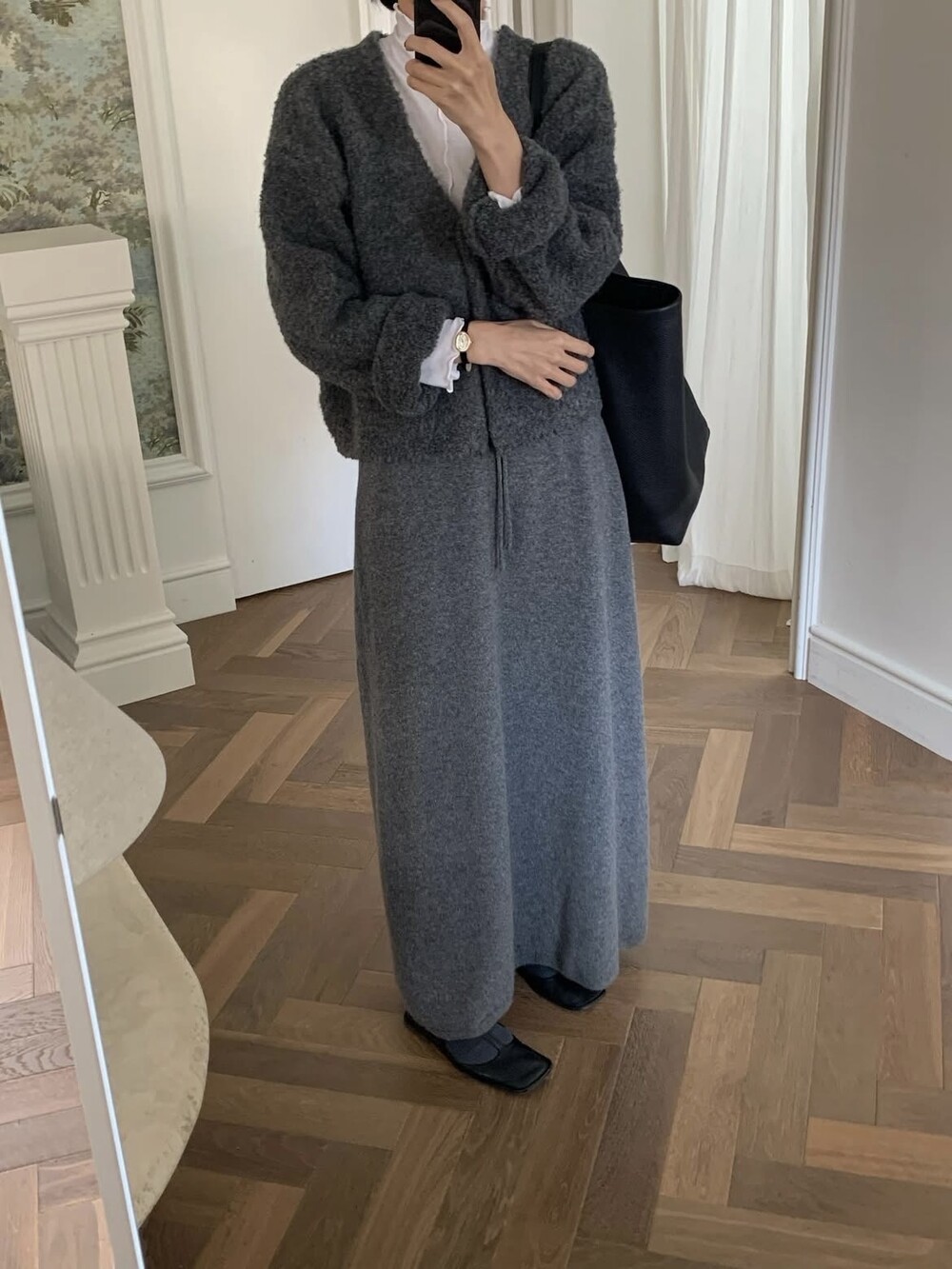 Wool knit maxi skirt-IVORY/ GREY/ BLACK