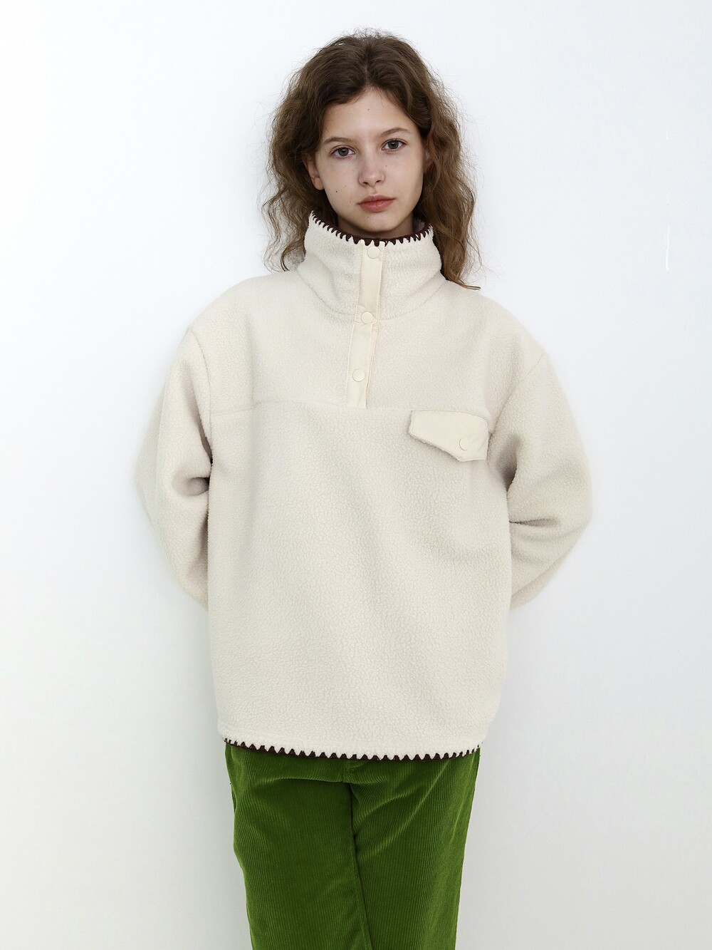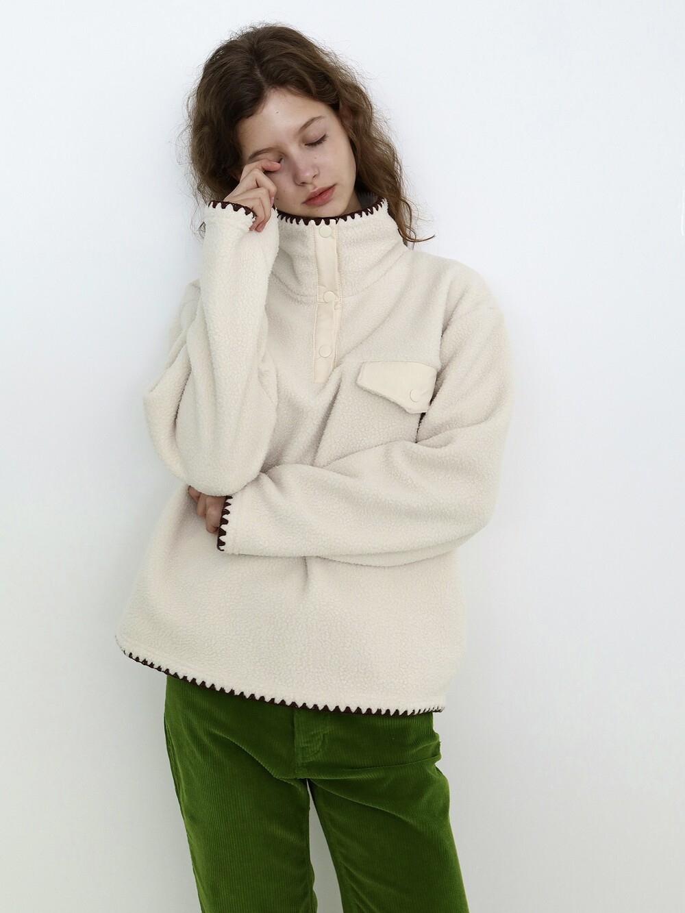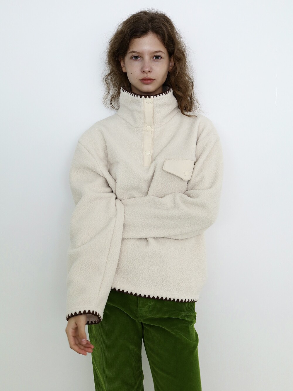 Half snap high neck fleece-CREAM/ CHARCOAL