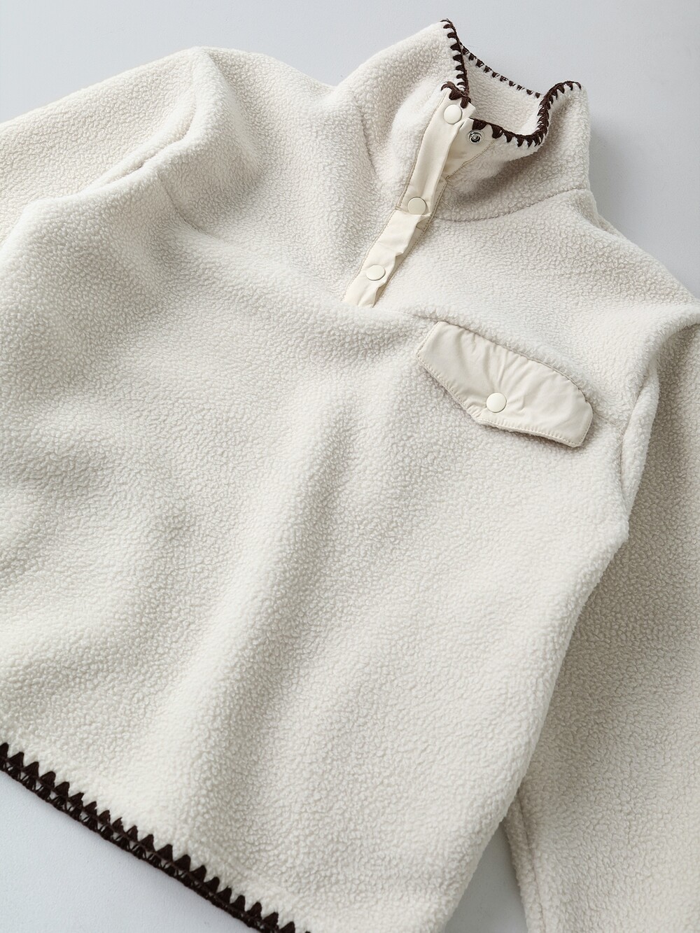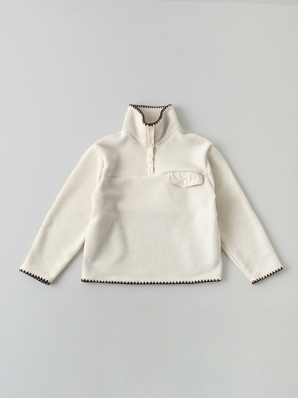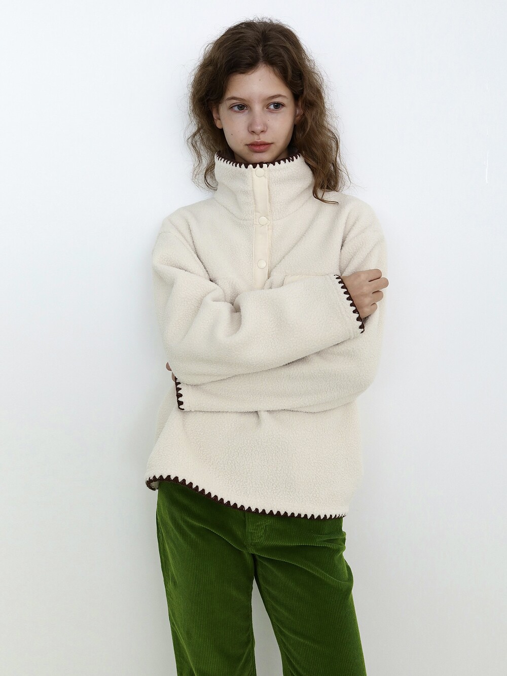 Half snap high neck fleece-CREAM/ CHARCOAL
