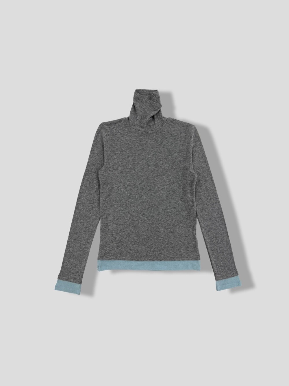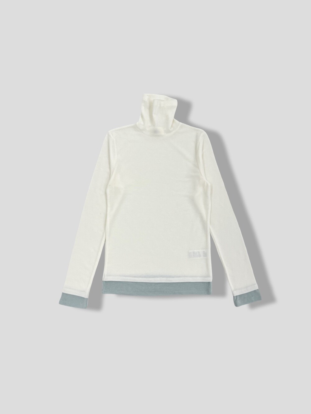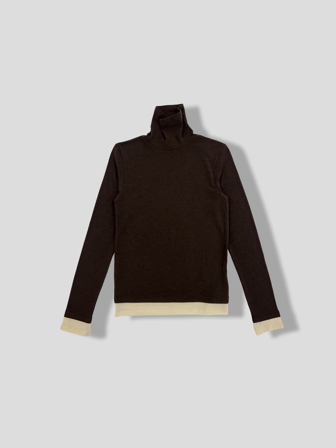 Soft wool-blend turtleneck tee-IVORY/ BROWN/ GREY