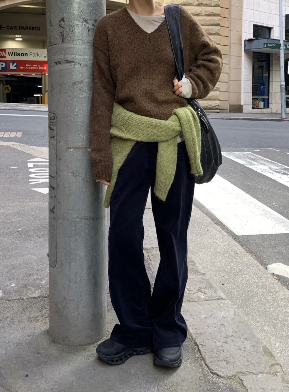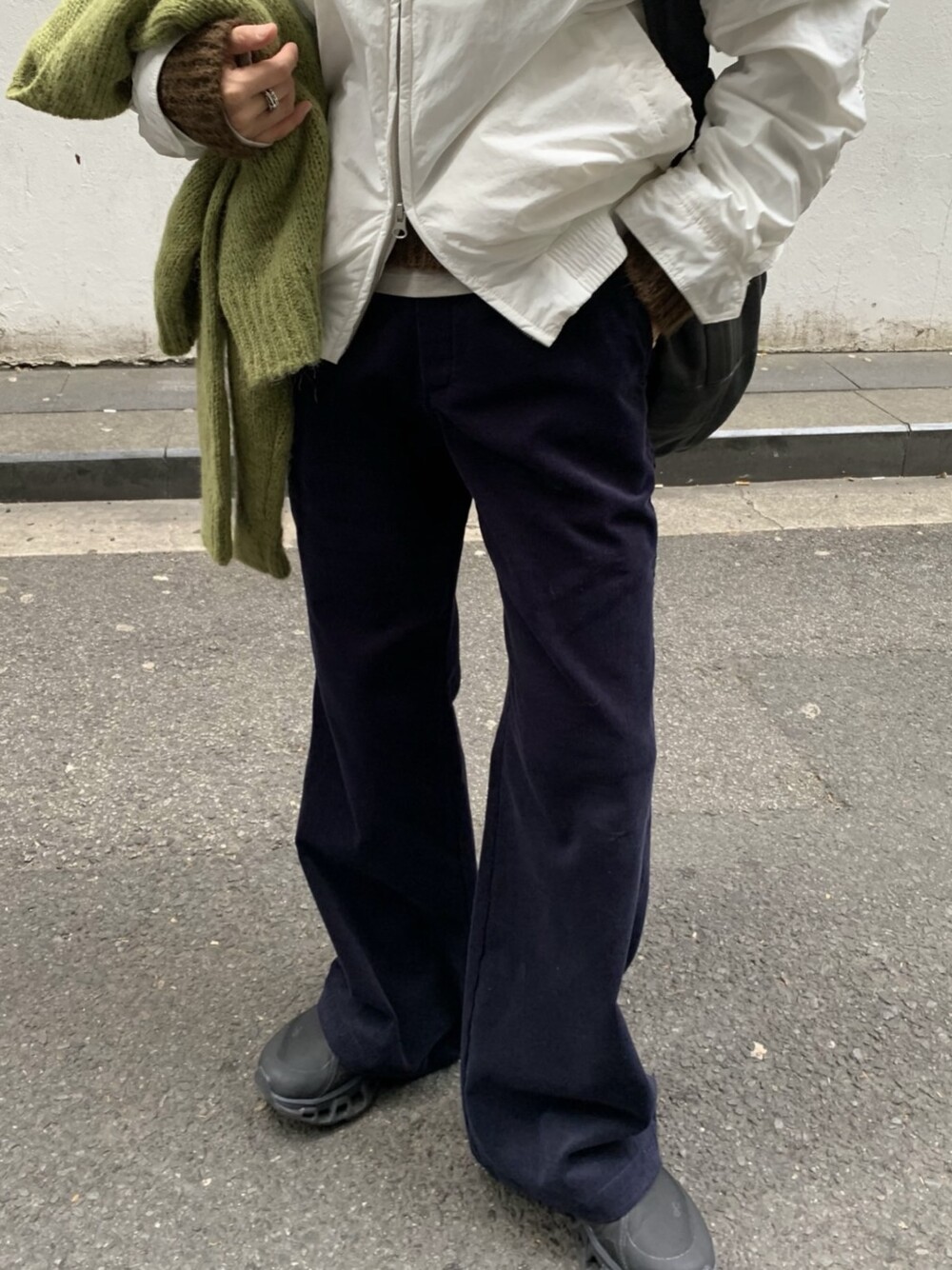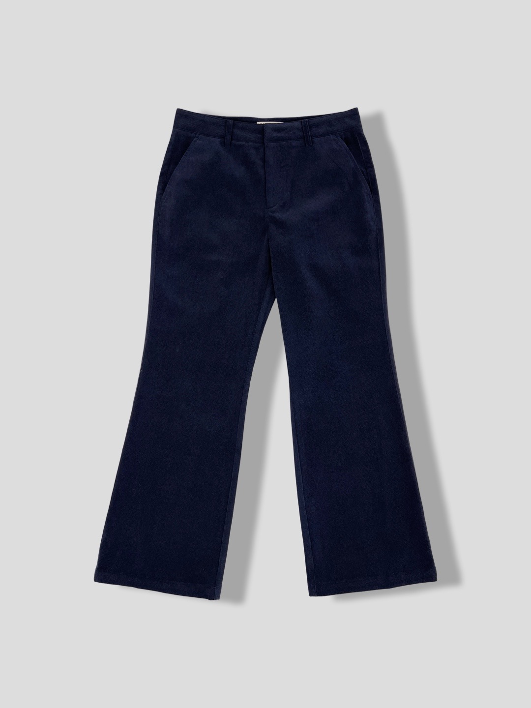 Fine Corduroy Flared Trousers-NAVY/ BROWN