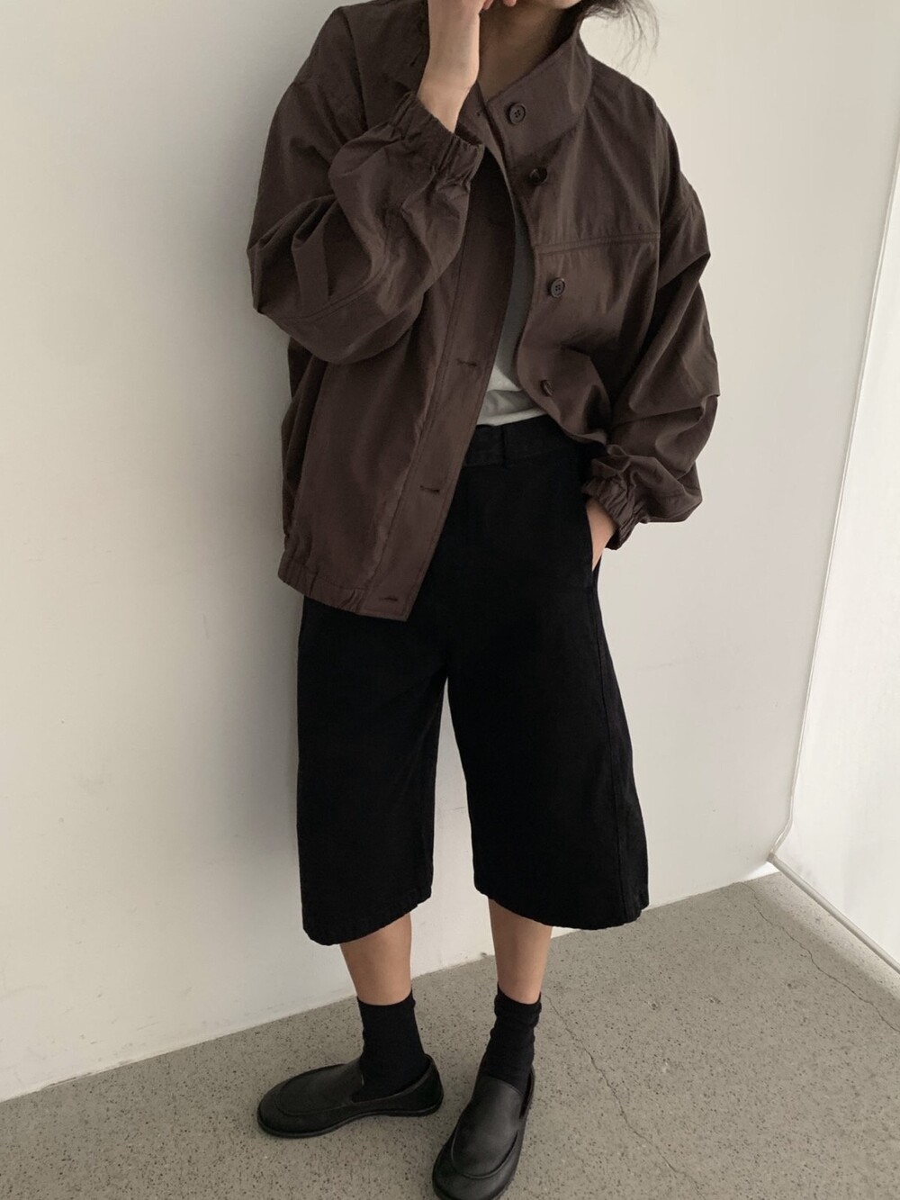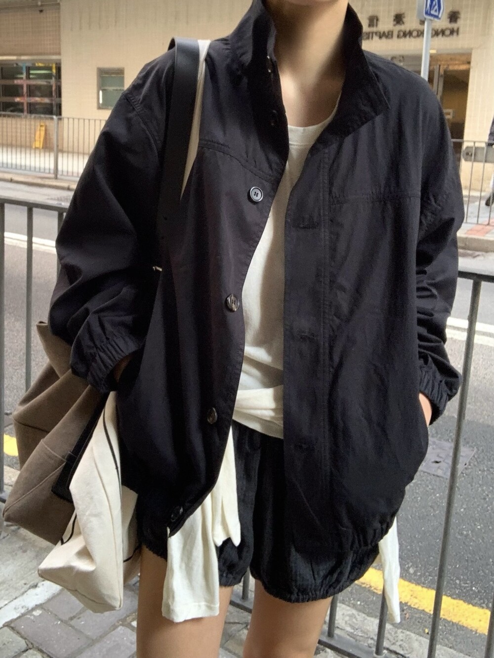 Oversized Cotton-Nylon Blouson Jacket-BLACK/ CREAM/ BROWN