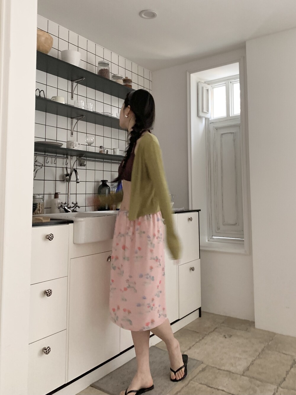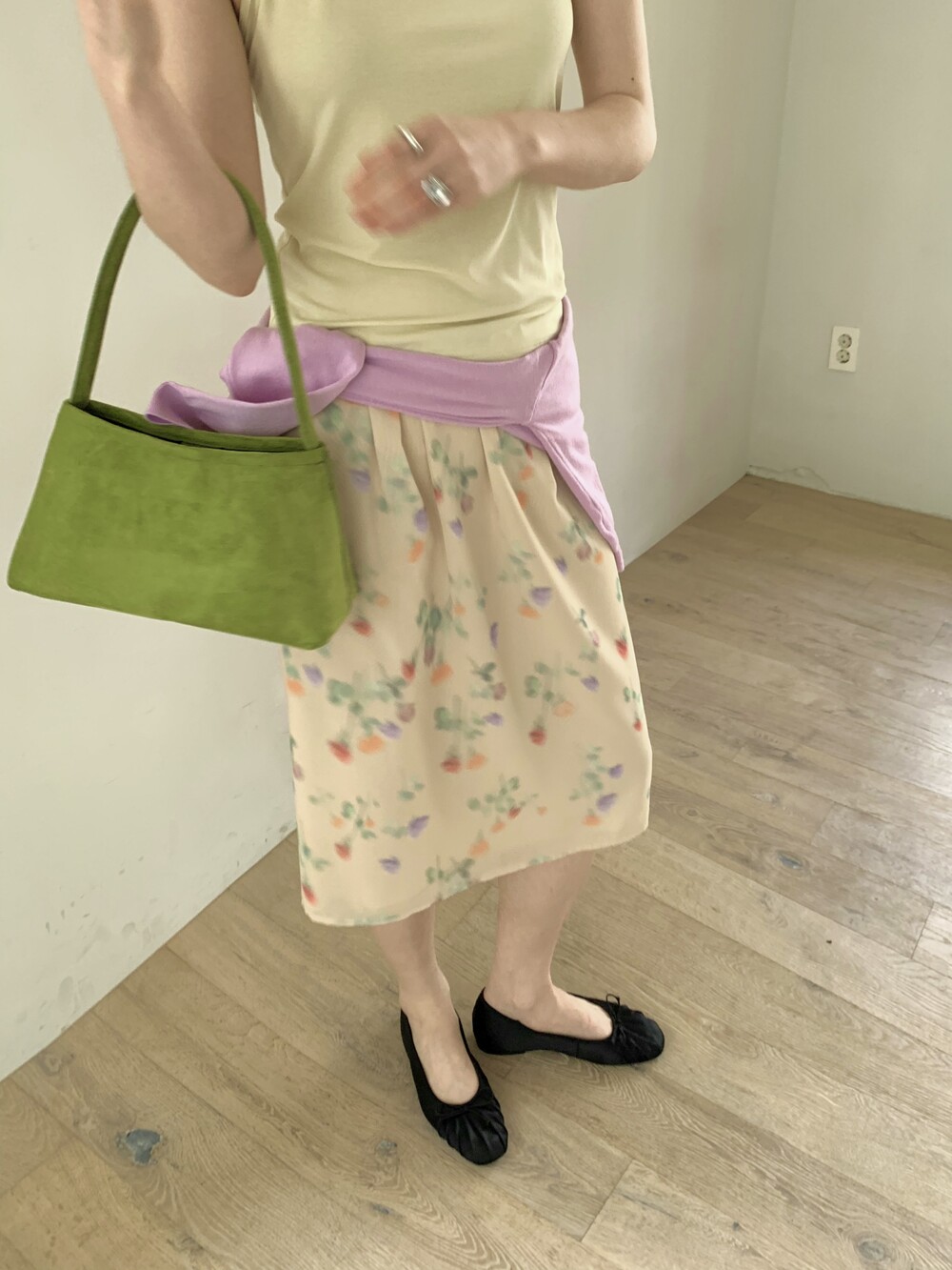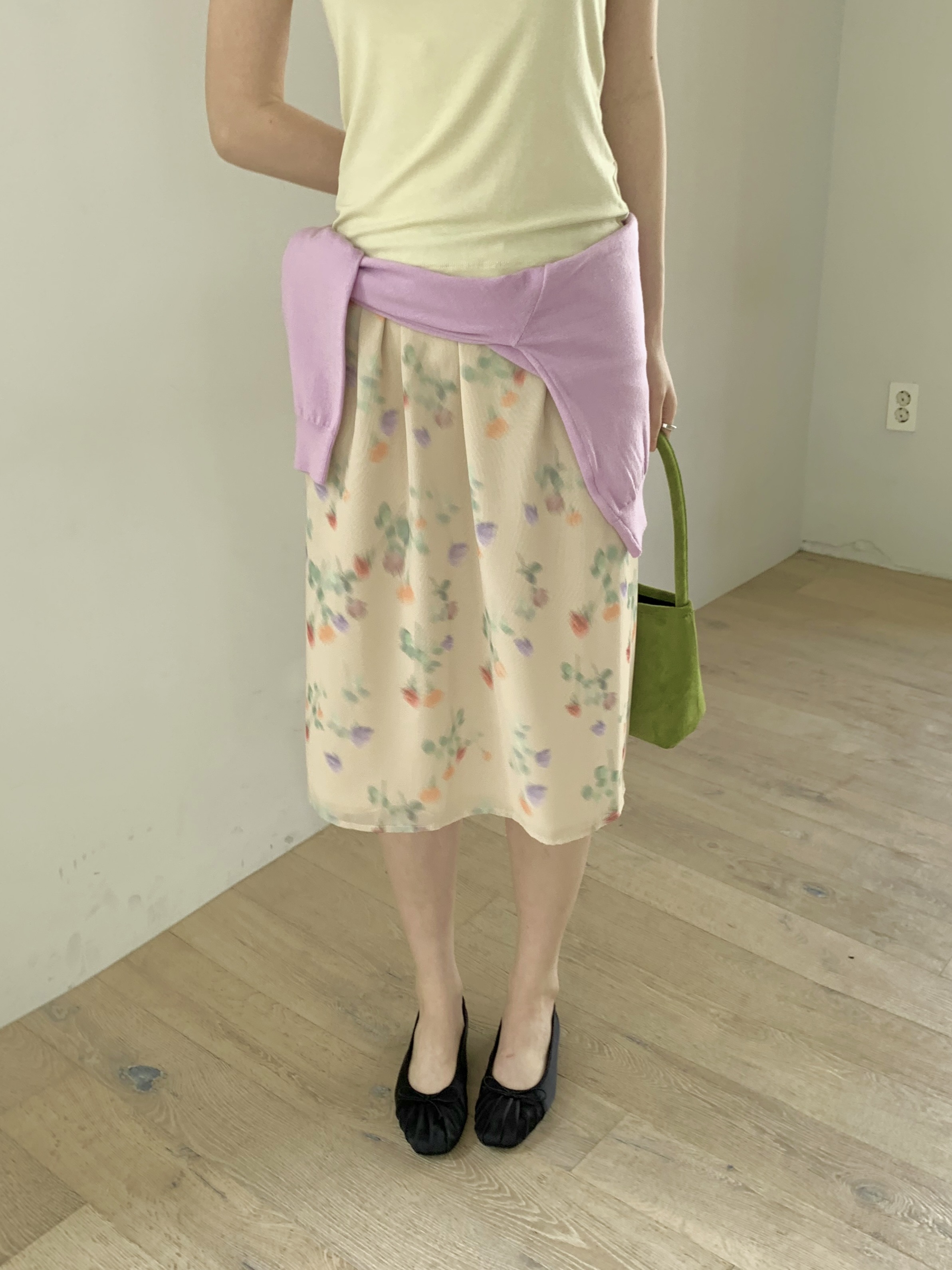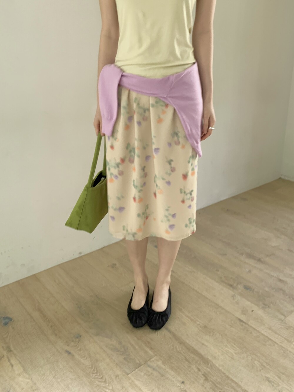 Floral Print Elastic Waist Midi Skirt-2 Colours